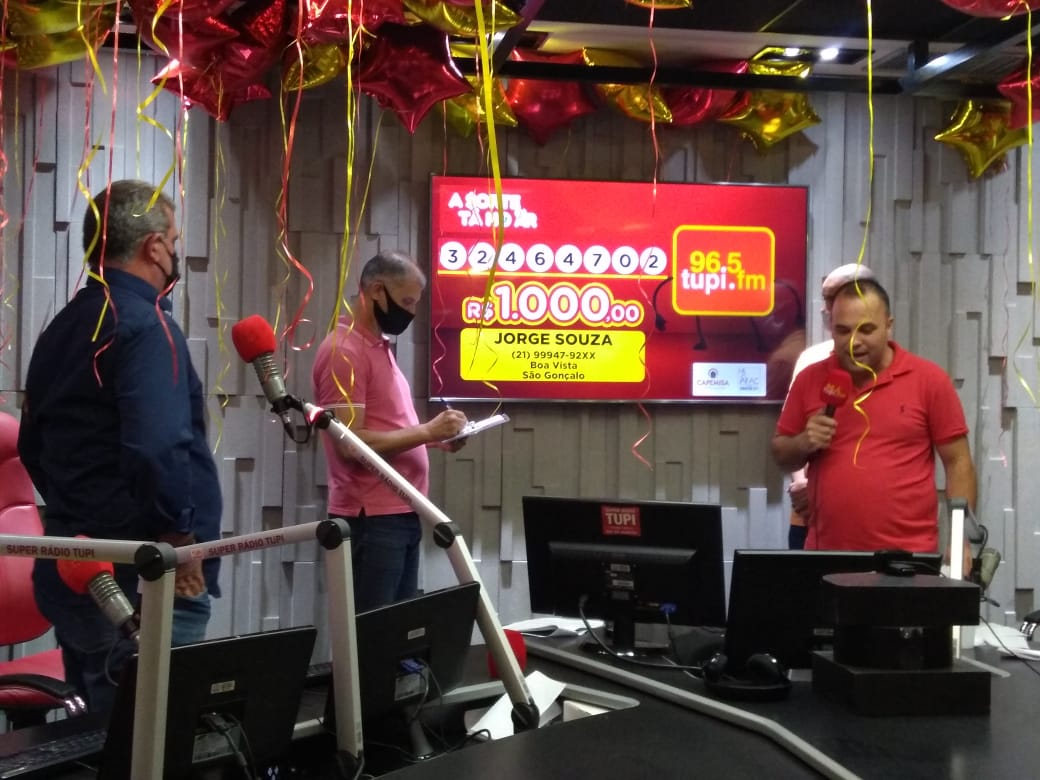 O segundo sorteio deste sábado, dia 26 de setembro, aconteceu às 18h30, dentro do Super Futebol Tupi. O ganhador foi Jorge Souza, morador do bairro Boa Vista, em São Gonçalo, na Região Metropolitana do Rio. Ele faturou R$ 1 mil. O número do título sorteado foi: 32.464.702.