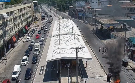 Manifestação afeta BRT e fecha Av. Cândido Benício na Praça Seca
