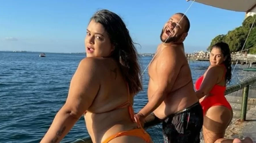 Nas imagens, eles aparecem em Salvador, na Bahia. No registro os três aparecem com a mesma pose e trajes de banho.