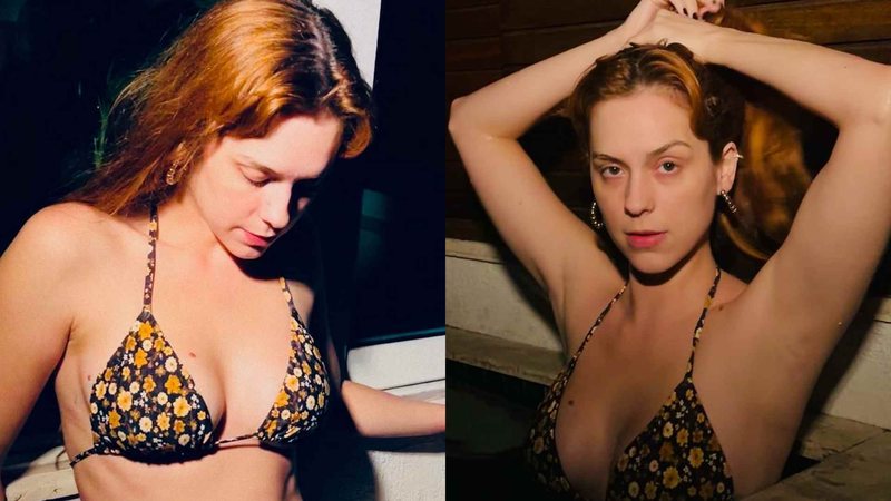 No Instagram, a atriz durgiu usando um biquíni fio-dental florido enquanto fazia algumas poses na piscina. As curvas da artistas e a barriga negativa chamaram a atenção.
