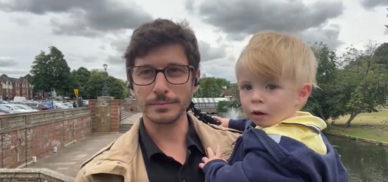É comum que os pais levem seus filhos para o trabalho, mas o jornalista Felipe Kieling, levou a tradição a sério. Ele, que é correspondente na Europa e trabalha a maior parte do tempo sozinho, precisou entrar ao vivo com o filho no colo por não ter aonde deixar o menino nesta manhã de quinta-feira (1).