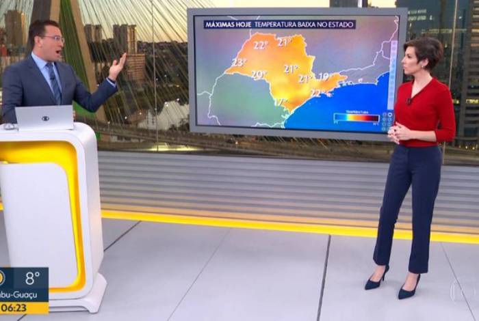 O “Bom Dia SP”, da Rede Globo, desta terça-feira (26) foi marcado por uma briga entre os apresentadores Rodrigo Bocardi e Glória Vanique. A discussão começou quando a jornalista falou sobre a sensação térmica de uma região de São Paulo e o âncora respondeu dizendo que a sensação é aquilo que o termômetro mede.