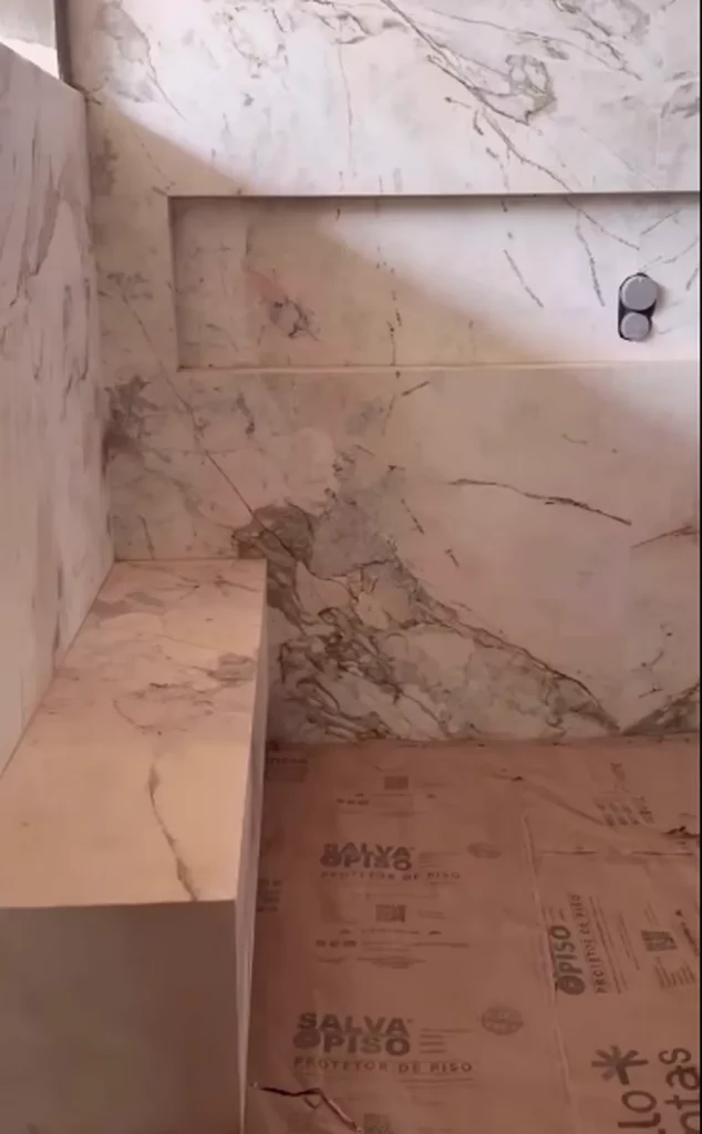 A digital influencer detalhou que os banheiros de Maria Alice e Maria Flor serão em mármore com detalhes rosa. Enquanto isso, o seu banheiro e o do cantor, contará com uma sauna particular em cada um deles.