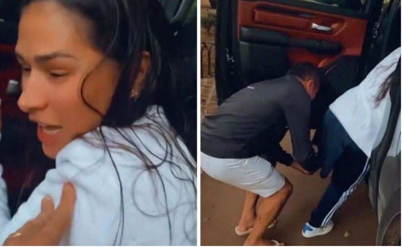A situação foi registrada pelo marido da cantora nas redes sociais. Ela tentou entrar no carro sozinha, mas não teve sucesso. Ele precisou até subir em um banquinho para entrar no carro.