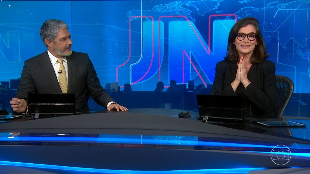 William Bonner resolveu quebrar o protocolo da Globo e entrevistar Renata Vasconcelos ao vivo durante o Jornal Nacional desta terça-feira (18).