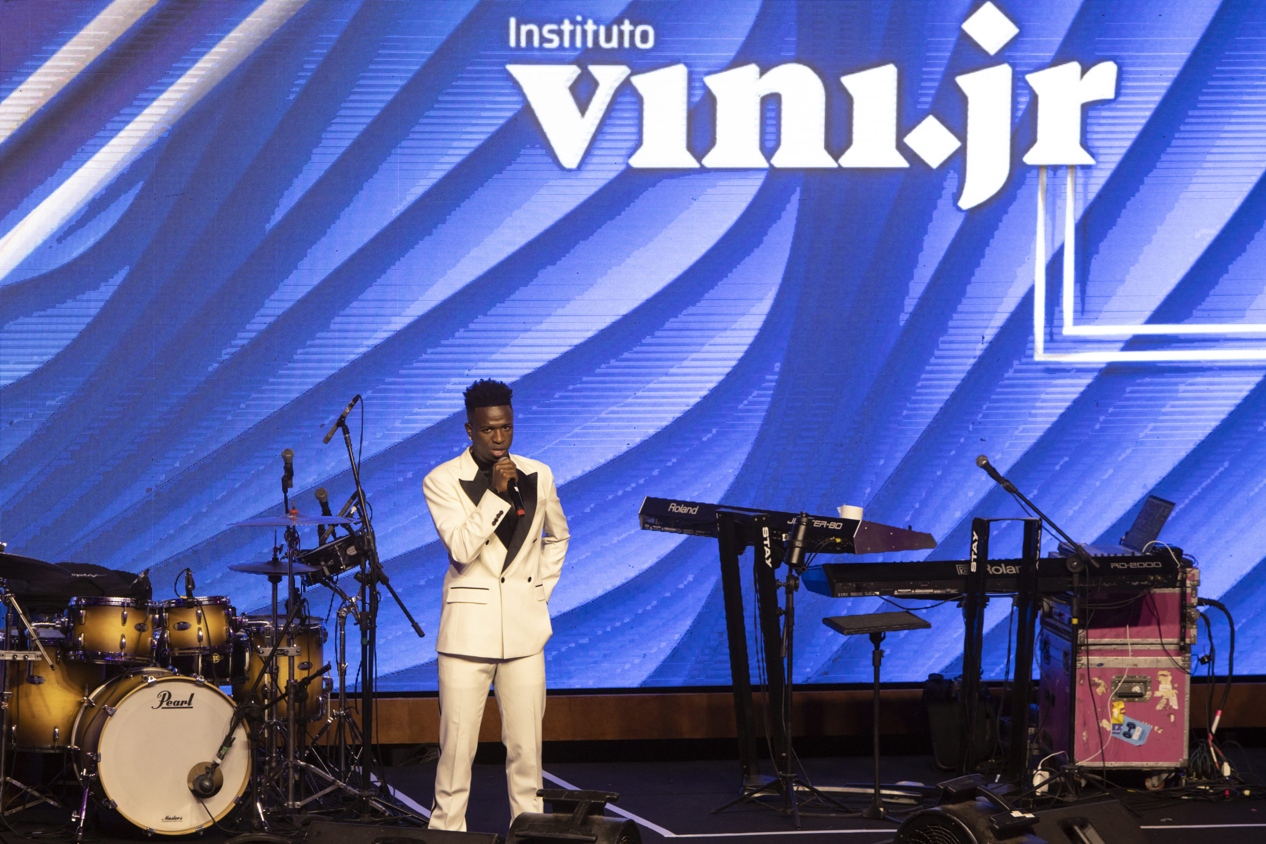 Vini Jr, jogador do Real Madrid, reuniu na noite dessa terça-feira (21) familiares, amigos e personalidades do esporte, da música e influenciadores digitais em uma grande festa para comemorar o primeiro ano do Instituto Vini.Jr. O evento foi apresentado pela jornalista Carol Barcellos, teve shows de Andressa Hayalla e Ludmilla e um jantar super especial.