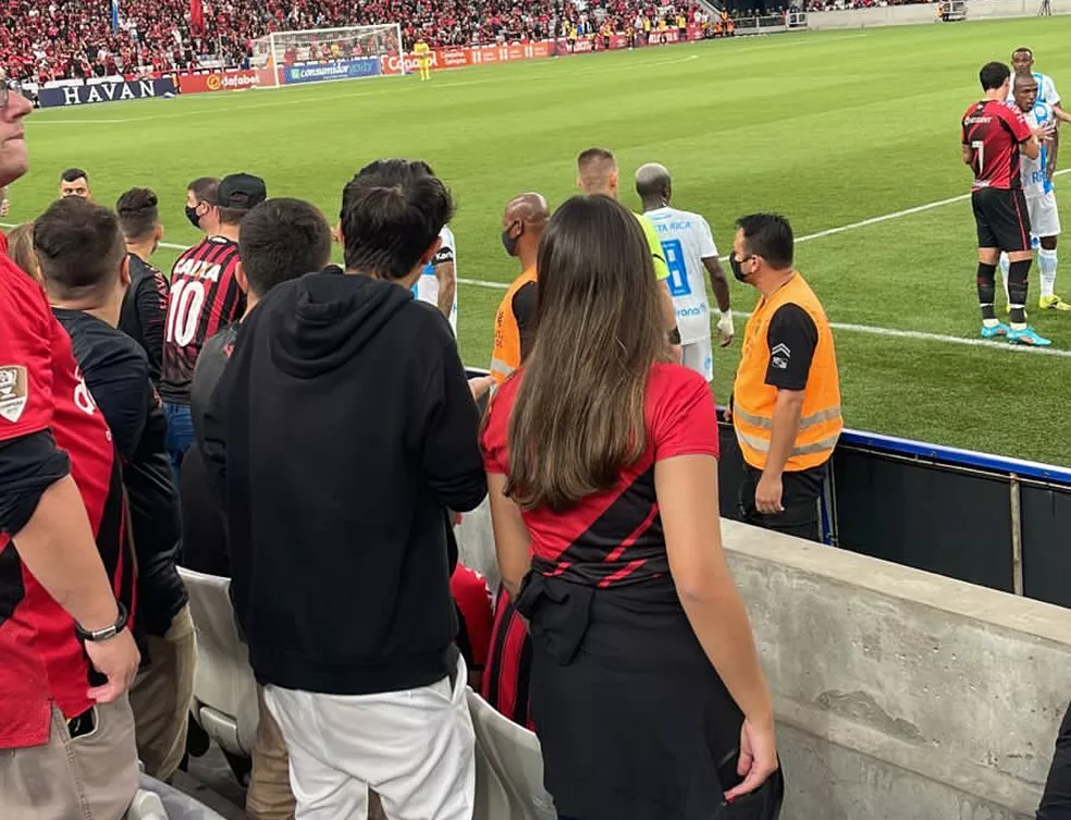 Os seguranças do Athletico, e a Polícia Militar (PM-PR) agiram rápido e retiraram o torcedor das arquibancadas. Ele foi encaminhado primeiramente para a Delegacia Móvel de Atendimento a Futebol e Eventos (Demafe) e depois para a central de flagrantes.