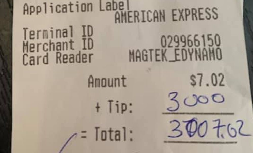 Cliente deixa US$ 3 mil de gorjeta a funcionários de restaurante nos EUA
