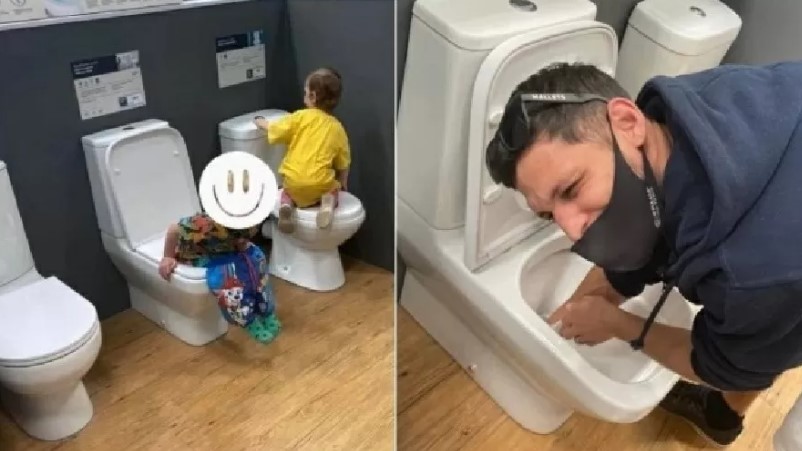 Criança faz cocô em privada de mostruário em loja de decoração