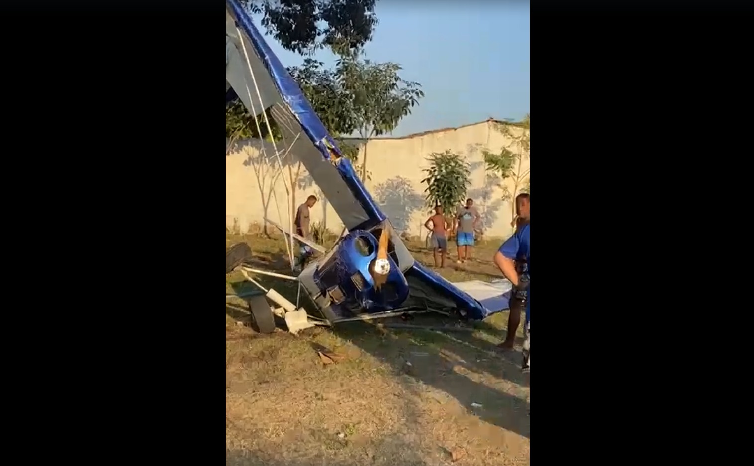 Avião de pequeno porte faz pouso forçado e fica totalmente destruído em Nova Iguaçu