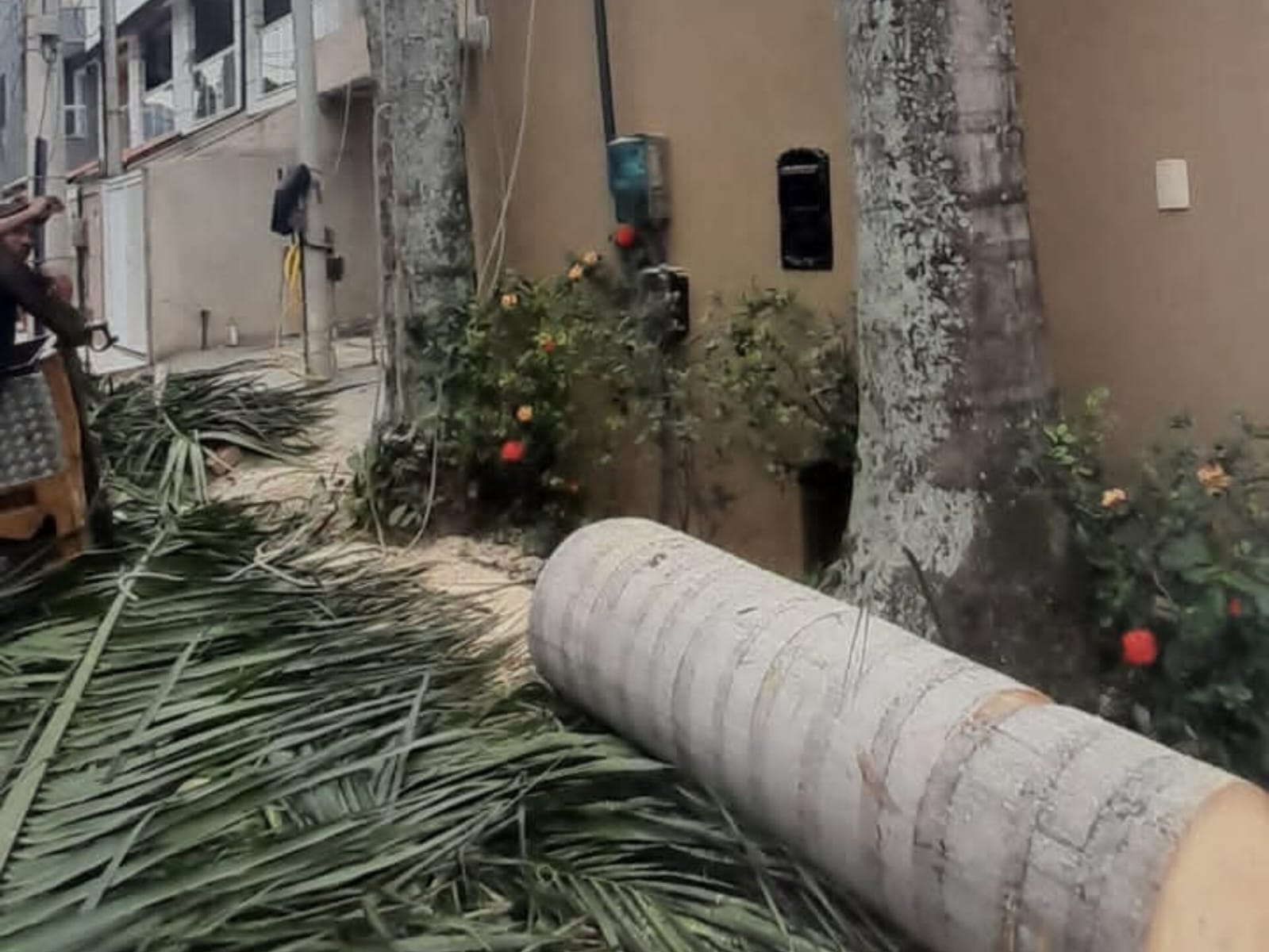 Homens são presos em flagrante por derrubarem palmeiras imperiais
