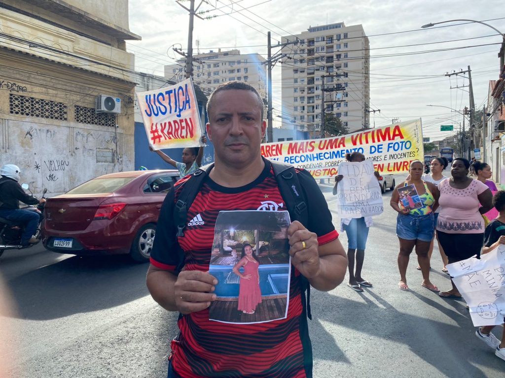 “Ela tem um filho pequeno que é dependente dela, ele tem problema de saúde. Ela foi presa por um reconhecimento de foto. A vítima disse que a assaltante é loira e magra, mas a minha filha é fortinha, tem cabelo castanho escuro, não são as características que estão no processo. Queremos a liberdade da Karen”, pede o pai.