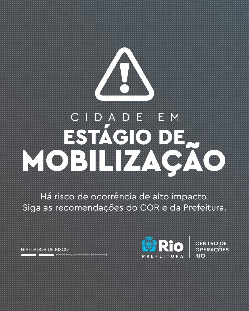 O Estágio de Mobilização é o segundo nível em uma escala de cinco e significa que há riscos de ocorrências de alto impacto na cidade.