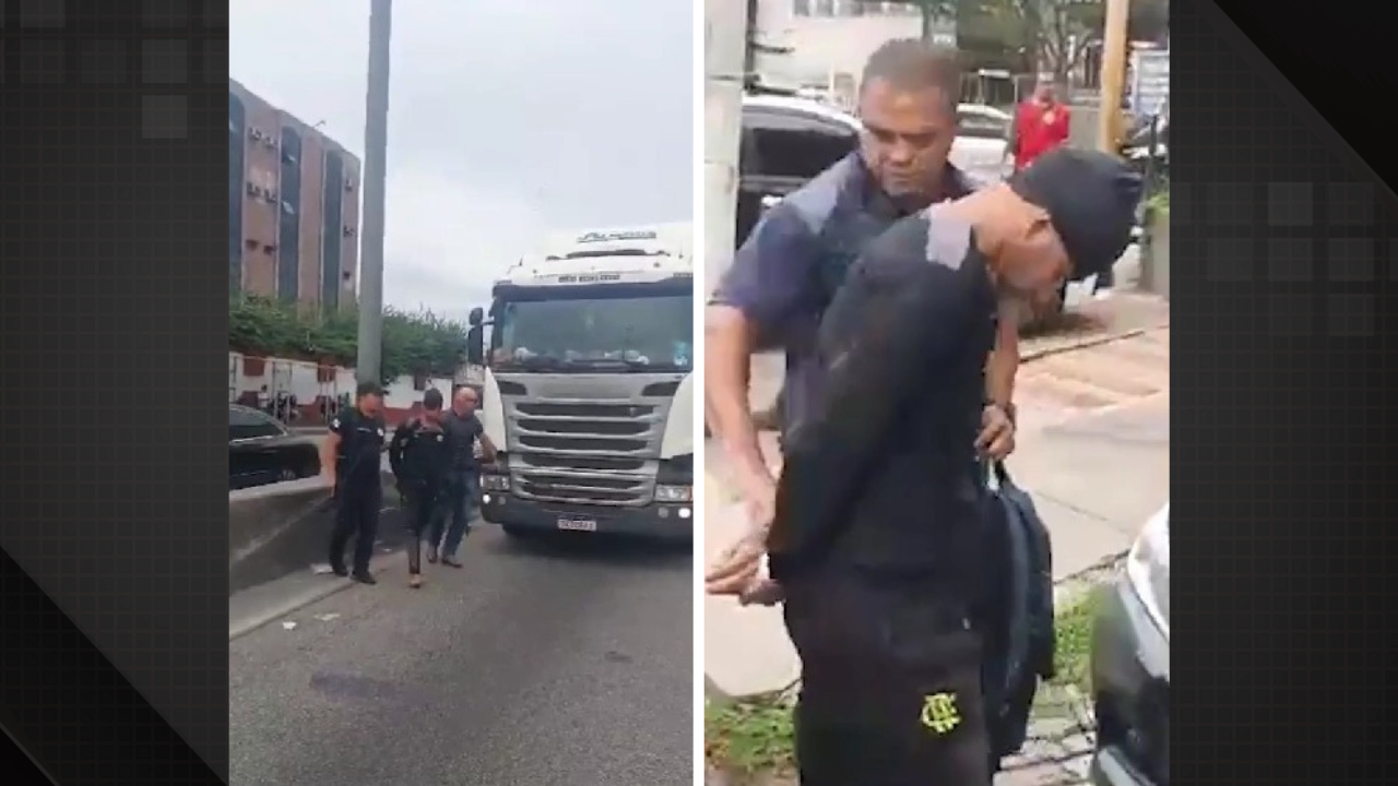 A ação ocorreu na Avenida Brasil, altura do bairro da Penha, Zona Norte do RioPoliciais civis e militares atuaram em conjunto ao prender em flagrante dois assaltantes, neste sábado (28), na Avenida Brasil, altura do bairro da Penha, Zona Norte do Rio. Os dois homens tentaram roubar dois caminhões de uma empresa de cerveja com carga avaliada em cerca de R$ 215 mil.