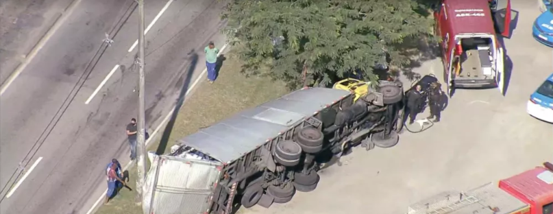 Na manhã desta terça-feira (25), um caminhão tombou, na Avenida das Américas, sentido Barra de Guaratiba, na altura do Recreio dos Bandeirantes, Zona Oeste do Rio. O Corpo de Bombeiros foi acionado por volta das 8h30.