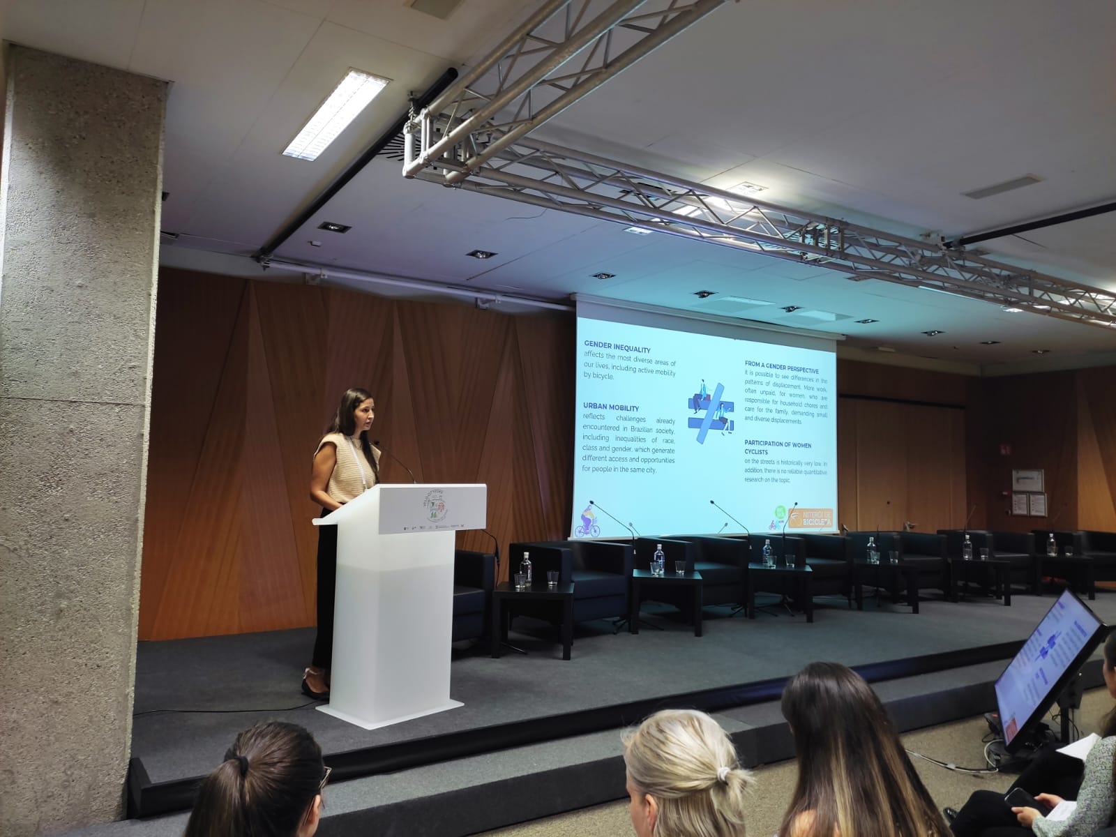 No debate sobre promoção de igualdade de gênero na mobilidade, a diretora de Educação e Comunicação da Coordenadoria Niterói de Bicicleta, Helena Porto, apresentou um panorama do crescimento da participação das mulheres pedalando na cidade. Apresentando os dados de pesquisas realizadas na cidade, foram abordados os desafios relacionados ao tema.