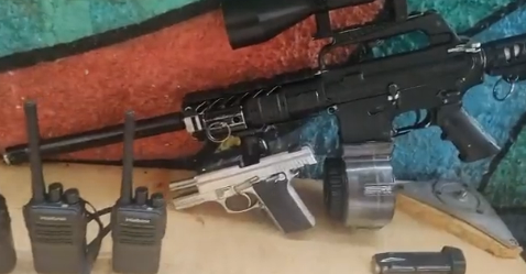 Arma de guerra (fuzil 5.56), pistola, carregadores, drogas e rádios de comunicação foram apreendidos