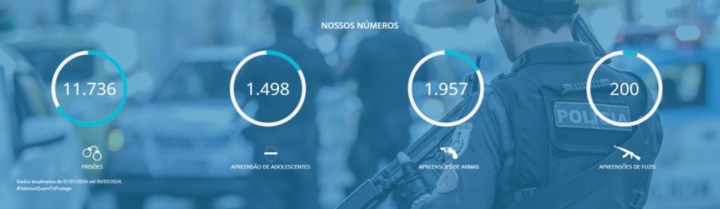 Já nesse ano de 2024, já são mais de 1.950 armas de fogo apreendidas, sendo 200 fuzis, 836 pistolas e 384 revólveres. Além disso, os agentes efetuaram 11.736 prisões e apreenderam 1.498 adolescentes.