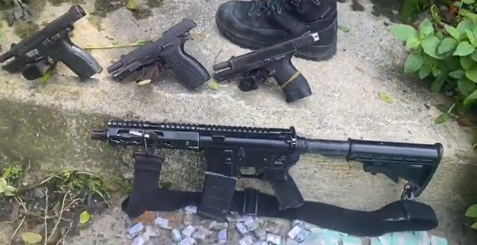 De acordo com a corporação, equipes realizam ação para coibir o tráfico de drogas na localidade. Os PMs apreenderam quatro armas, sendo um fuzil e três pistolas, além de cinco rádios de comunicação e drogas.