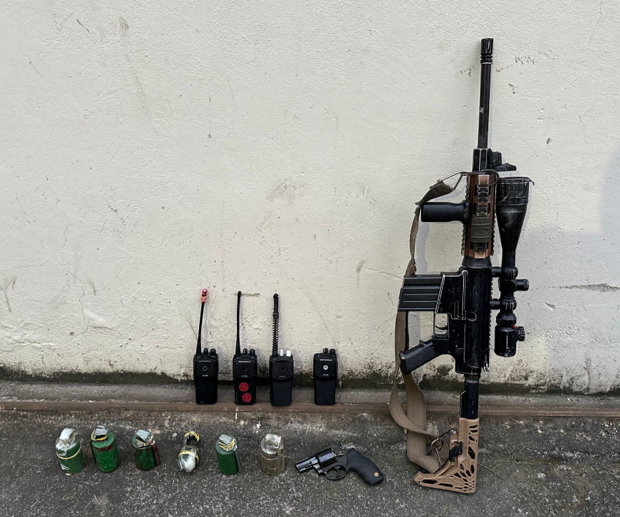 Em nota, a Polícia Militar informou que foram apreendidos um fuzil, seis granadas e quatro rádios transmissores.