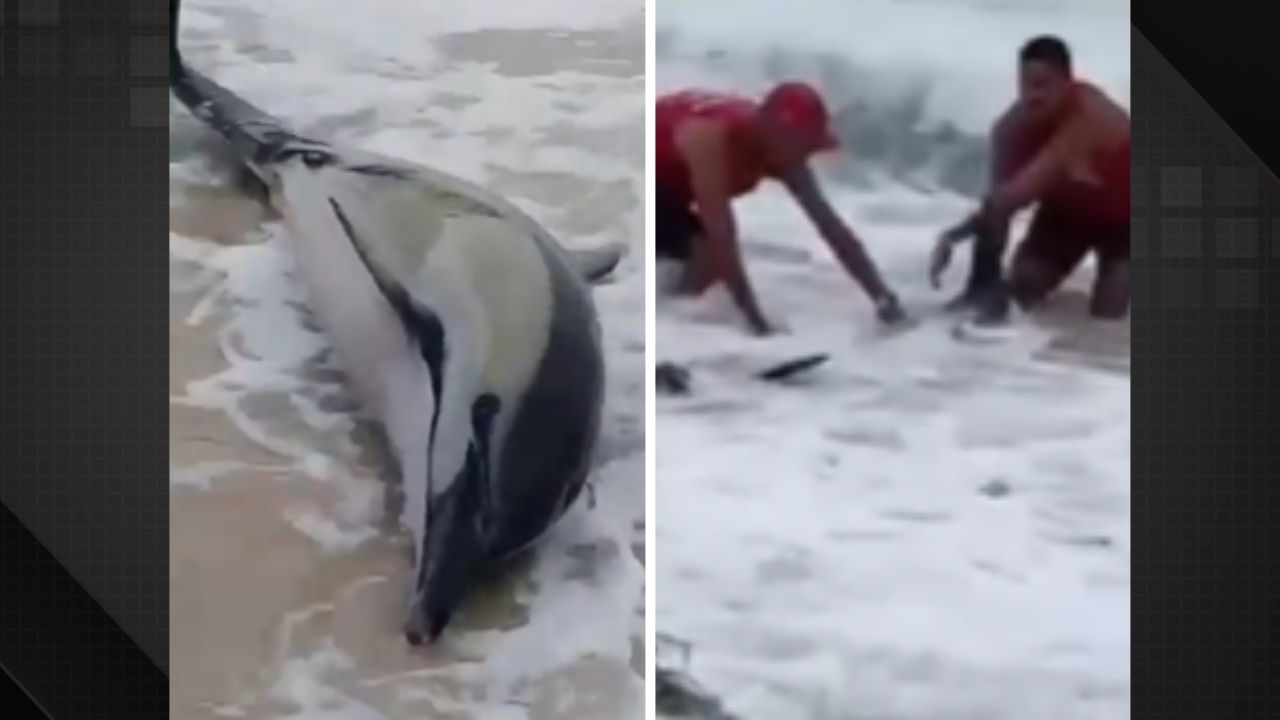 Vídeo emocionante mostra resgate de golfinho que encalhou na Praia do Recreio