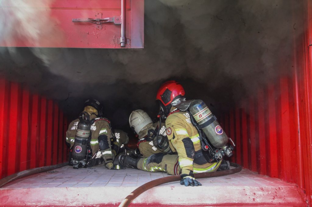 Durante a aula, um pequeno foco é aceso e os alunos podem acompanhar, do interior do contêiner, narrado por um instrutor, todo o desenvolvimento de um incêndio. Dentro do simulador, a fumaça atinge temperaturas próximas de 600° e os bombeiros são colocados à prova em situação de pouca visibilidade e muito calor.