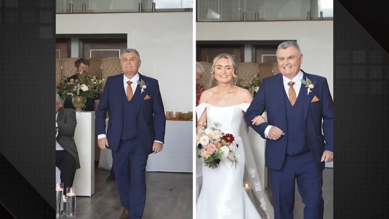 Nas imagens, Neil Crossley de 60 anos, aparece entrando no corredor em direção ao altar sem a noiva. Um membro da equipe de cerimônia então o avisa para ele retornar para buscar sua filha. Ao perceber a gafe, Neil cai na risada junto com os convidados e a equipe.
