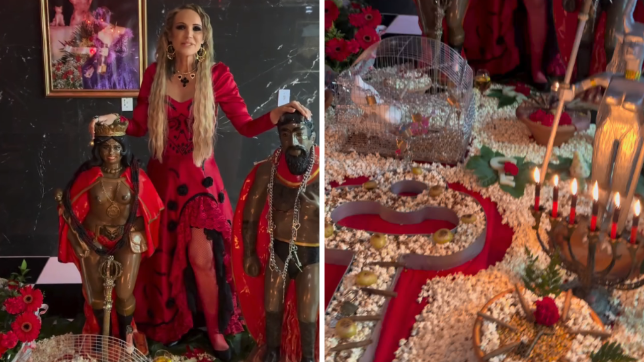 Em um vídeo postado nas redes sociais, a Mãe de Santo Michelly da Cigana mostrou o trabalho feito e afirmou que ele custou R$ 77 mil. “Essa mesa linda, hoje, é para tirar a doutora Deolane da cadeia, ela e a mãe dela”, disse.