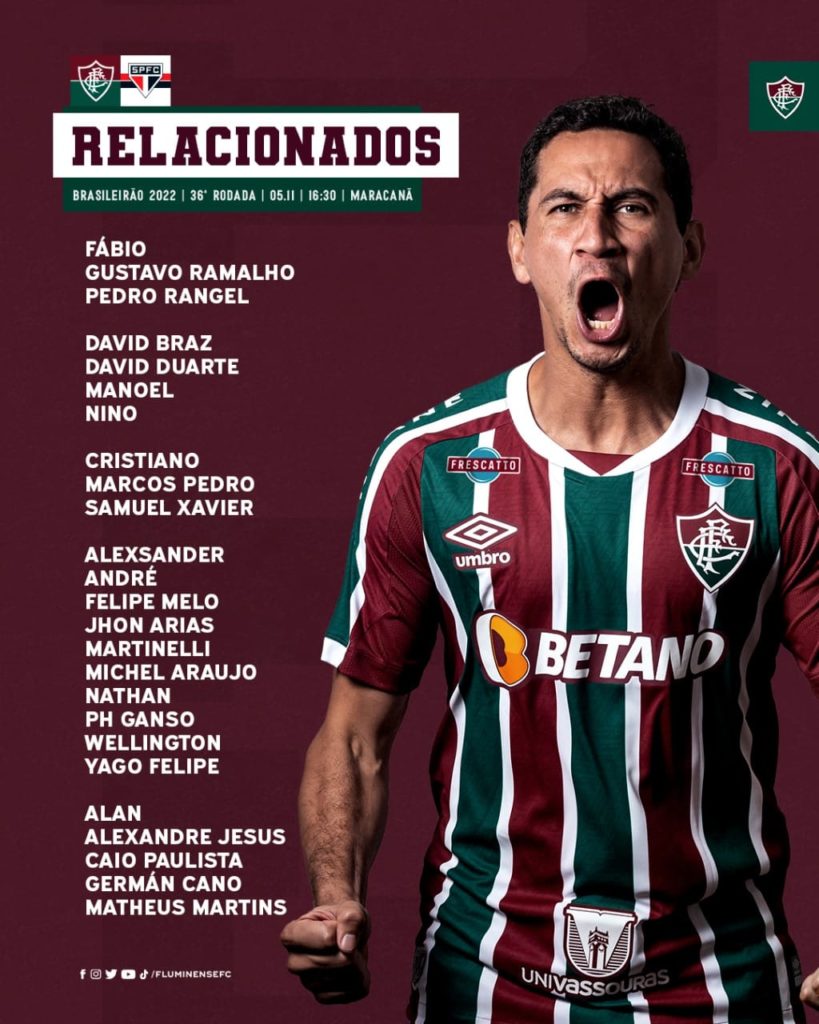 Fluminense divulga relacionados para a partida contra o São Paulo