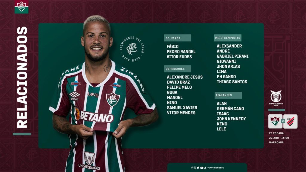 Com ausência importante e retornos, o Fluminense divulgou a lista de relacionados para a partida diante do Athletico-PR, neste sábado, às 16h, no Maracanã. O técnico Fernando Diniz não vai poder contar com Marcelo, poupado, mas terá as voltas de Keno e Manoel após desfalques por quadro de gripe.