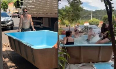Vídeo: família viraliza ao improvisar piscina na rua para fugir do calor