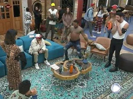 Na volta para sede, logo depois de escapar da berlinda, Nego deixou a emoção falar mais alto. O funkeiro tirou a camisa, colocou na cabeça trampando o rosto como um “ninja” e começou a cantar música “Vida Louca”, de MC Poze. Ele ainda bateu no sino avisando sua chegada e ao cruzar a porta da casa foi recebido com um caloroso abraço do influenciador Erasmo Viana.