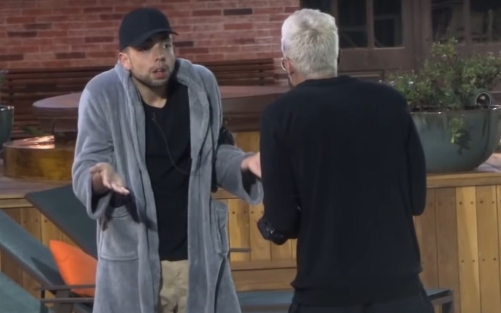 Já dentro da casa, Lucas Selfie desabafou sobre a briga com os peões que estavam na sala e na cozinha no momento. “Tô sozinho nessa porra. Veio encher o saco porque queria que eu botasse a Lidi na roça para salvar os dois (Jake e Mariano). Não vou!”, disparou revoltado. “Você está de cabeça quente, se acalma”,tentou intervir Stéfani Bays. “Não vou fazer o jogo que eles querem que eu faça porque tenho prioridades aqui. Se quiser virar a cara, foda-se, não nasci grudado”, concluiu o ex-Pânico.