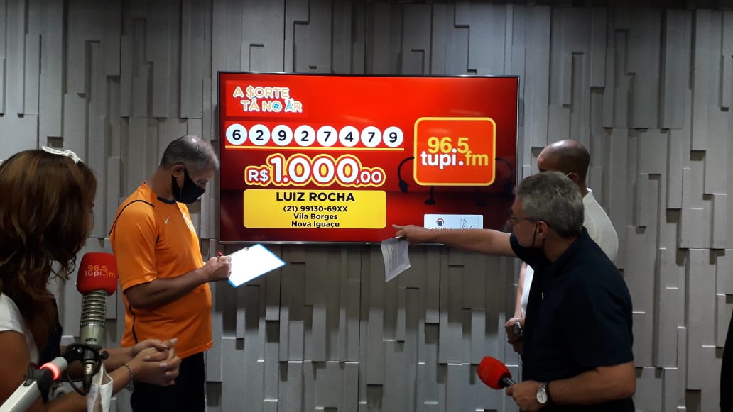 O primeiro sorteio desta segunda-feira aconteceu às 12h30, no programa Patrulha da Cidade. Você confere em 96,5 FM, no site Tupi.FM, no aplicativo e no canal do YouTube da Super Rádio Tupi.