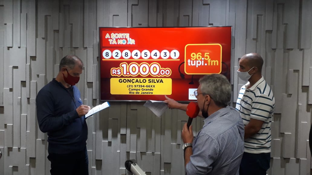 O primeiro sorteio desta sexta-feira aconteceu às 12h30, no programa Patrulha da Cidade. Você confere em 96,5 FM, no site Tupi.FM, no aplicativo e no canal do YouTube da Super Rádio Tupi.