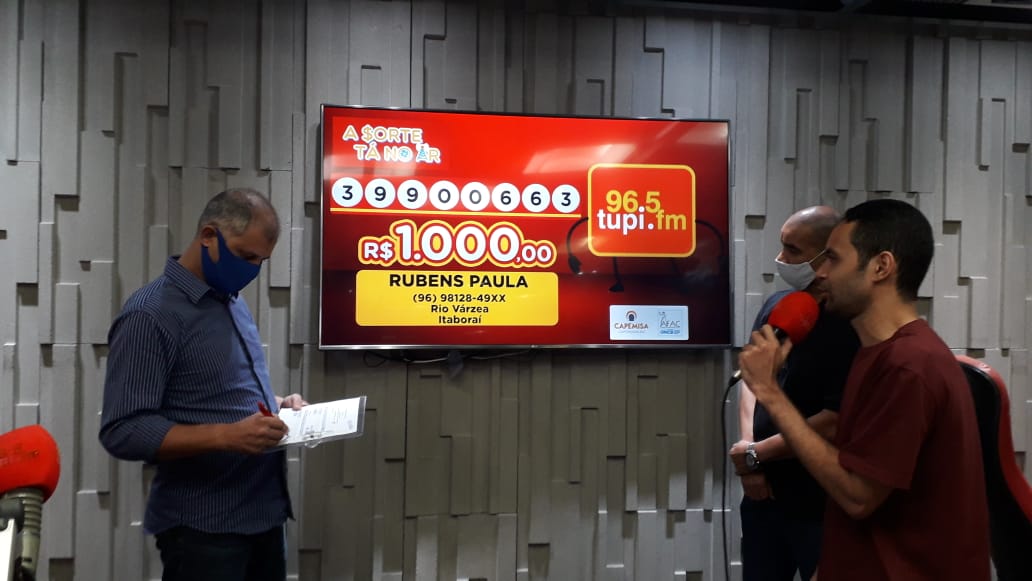 O primeiro sorteio deste sábado aconteceu às 12h30, no programa Patrulha da Cidade. Você confere em 96,5 FM, no site Tupi.FM, no aplicativo e no canal do YouTube da Super Rádio Tupi.