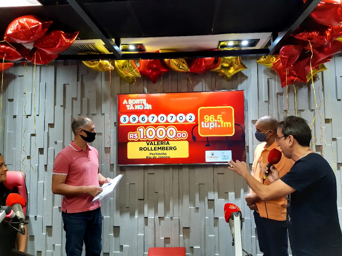 O segundo sorteio deste sábado acontece às 18h30, no Super Futebol Tupi. Você confere em 96,5 FM, no site Tupi.FM, no aplicativo e no canal do YouTube da Super Rádio Tupi.
