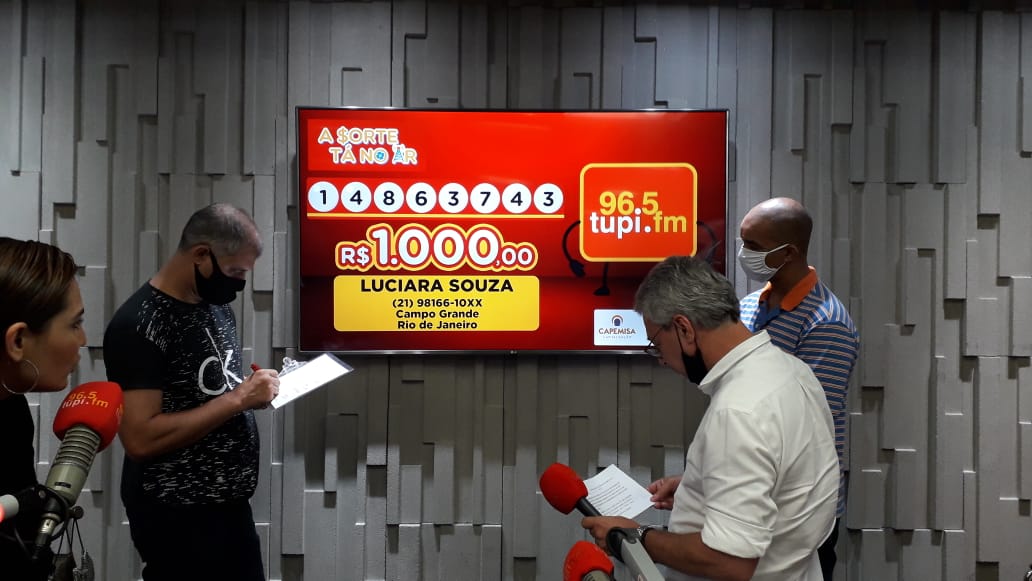 O primeiro sorteio desta quarta-feira aconteceu às 12h30, no programa Patrulha da Cidade. Você confere em 96,5 FM, no site Tupi.FM, no aplicativo e no canal do YouTube da Super Rádio Tupi.