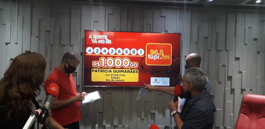O primeiro sorteio desta quinta-feira aconteceu às 12h30, no programa Patrulha da Cidade. Você confere em 96,5 FM, no site Tupi.FM, no aplicativo e no canal do YouTube da Super Rádio Tupi.