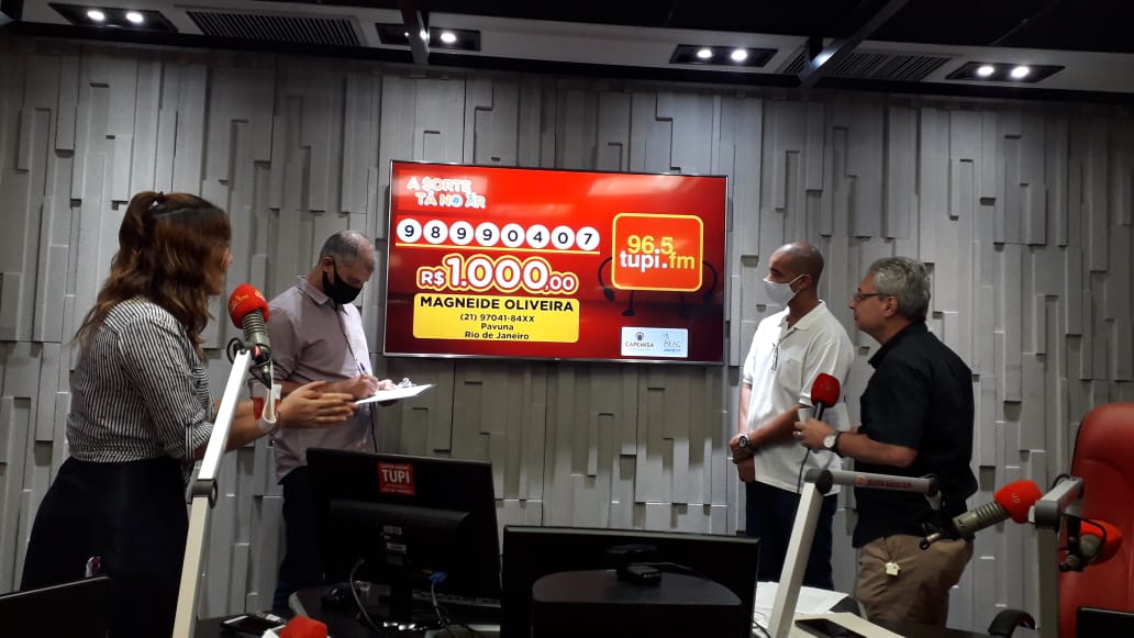 O primeiro sorteio desta segunda-feira aconteceu às 12h30, no programa Patrulha da Cidade. Você confere em 96,5 FM, no site Tupi.FM, no aplicativo e no canal do YouTube da Super Rádio Tupi.
