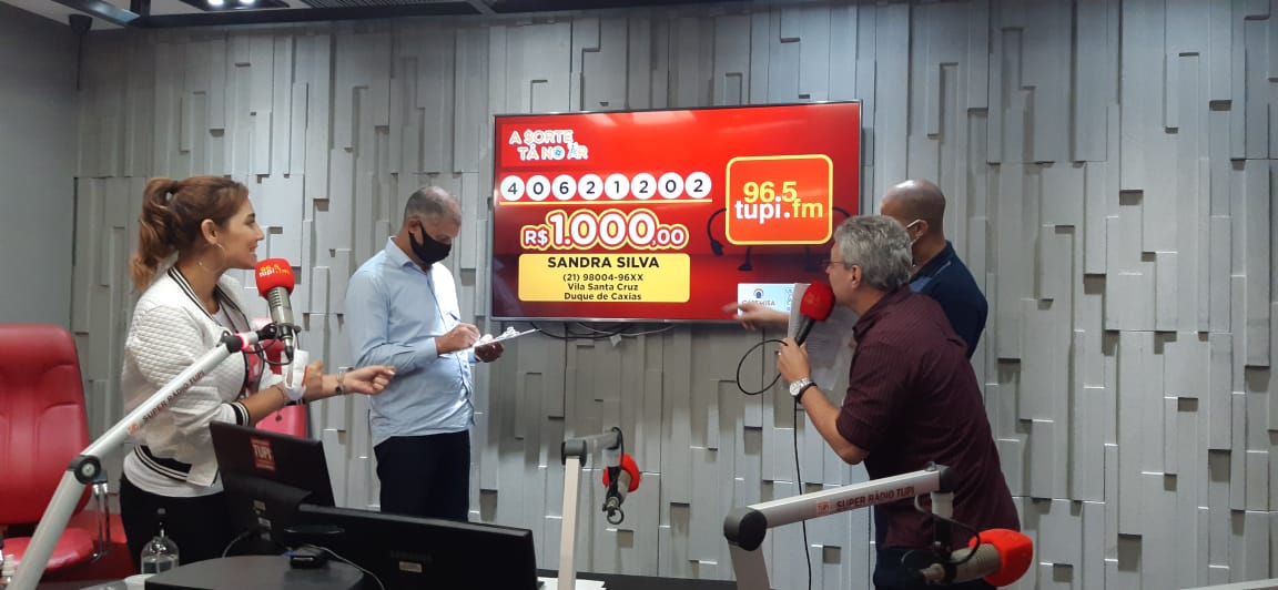 O primeiro sorteio desta segunda-feira (21) aconteceu às 12h30, no programa Patrulha da Cidade. Você confere em 96,5 FM, no site Tupi.FM, no aplicativo e no canal do YouTube da Super Rádio Tupi.