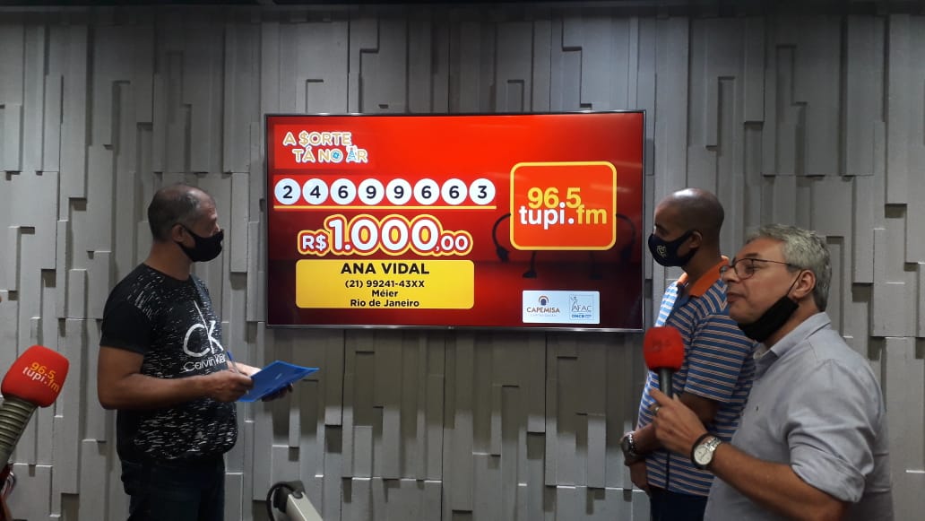 O primeiro sorteio desta terça-feira aconteceu às 12h30, no programa Patrulha da Cidade. Você confere em 96,5 FM, no site Tupi.FM, no aplicativo e no canal do YouTube da Super Rádio Tupi.