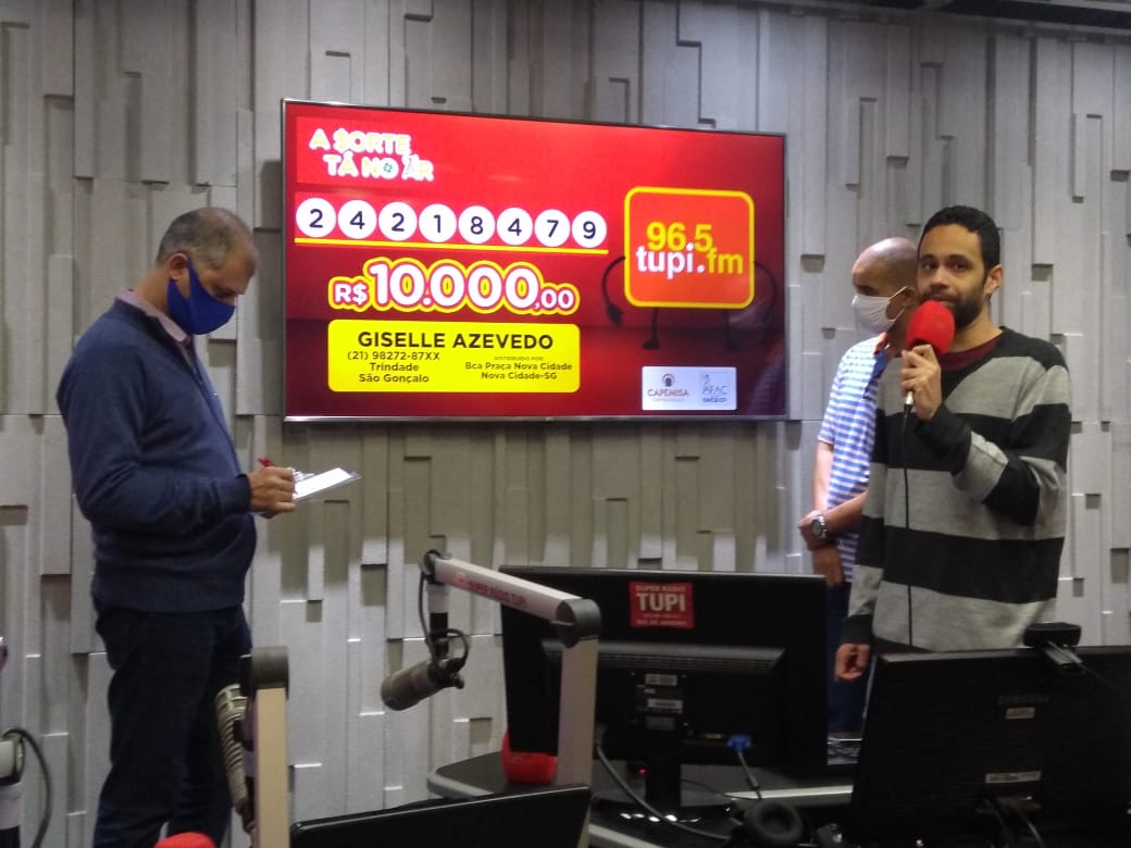 O próximo sorteio acontece nesta segunda-feira, , às 12h30, dentro da Patrulha da Cidade. Você confere em 96,5 FM, no site Tupi.FM, no aplicativo e no canal do YouTube da Super Rádio Tupi.