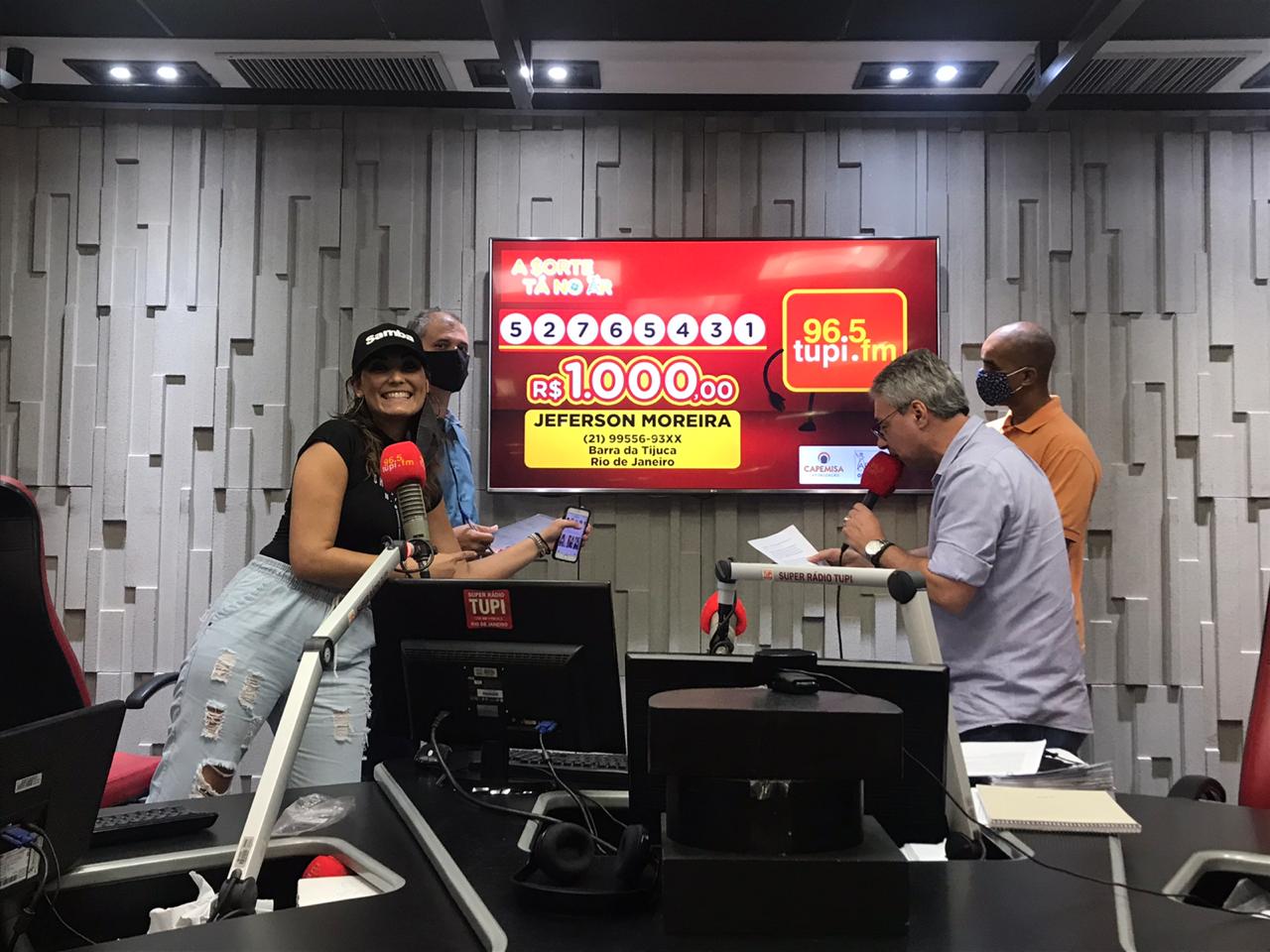 O primeiro sorteio desta quarta-feira aconteceu às 12h30, no programa Patrulha da Cidade. Você confere em 96,5 FM, no site Tupi.FM, no aplicativo e no canal do YouTube da Super Rádio Tupi.