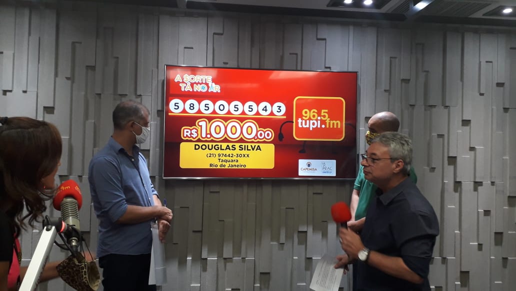 O primeiro sorteio desta terça-feira aconteceu às 12h:30, no programa Patrulha da Cidade. Você confere em 96,5 FM, no site Tupi.FM, no aplicativo e no canal do YouTube da Super Rádio Tupi.