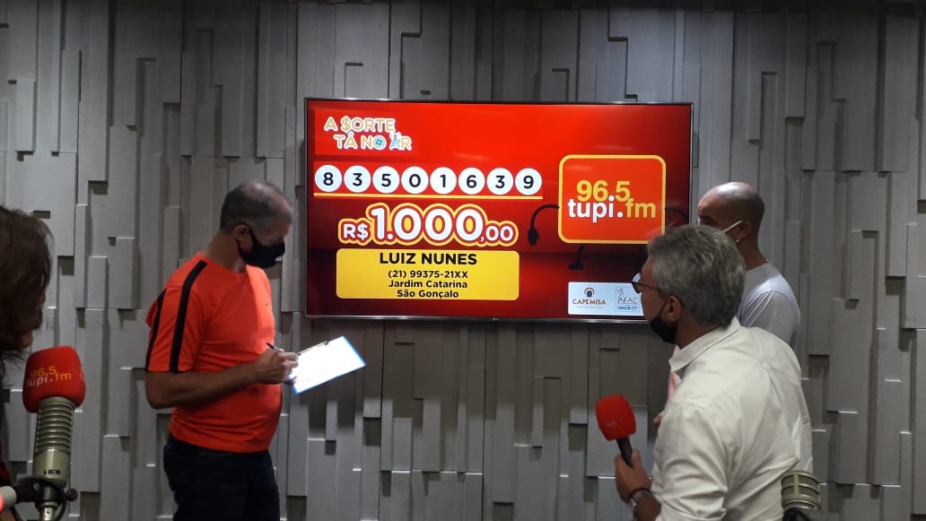 O primeiro sorteio desta sexta-feira aconteceu às 12h30, no programa Patrulha da Cidade. Você confere em 96,5 FM, no site Tupi.FM, no aplicativo e no canal do YouTube da Super Rádio Tupi.