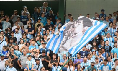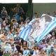 Torcida do Racing faz festa para animar jogadores antes do jogo contra o Flamengo e busca reverter a desvantagem no El Cilindro.