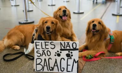 Tutores de cães da raça golden retriever se reuniram neste domingo (28) no aeroporto de Brasília para uma manifestação em defesa da regulamentação do transporte aéreo...