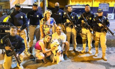 Equipes da PRF localizaram o cachorro em uma área de mata
