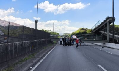 A BR-116 foi totalmente interditada nos dois sentidos às 9h30 desta quarta-feira (19) em Magé, no km 124, após a queda de uma passarela atingida por...